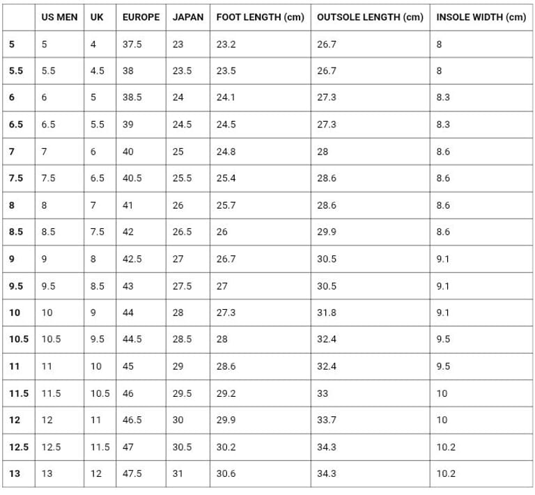 * Men’s sizes 5–13