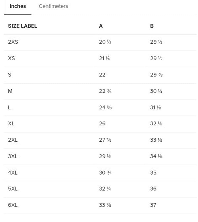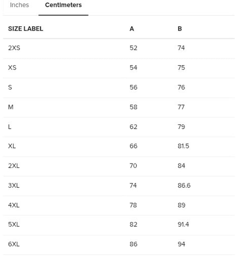 Extended size range: 2XS–6XL