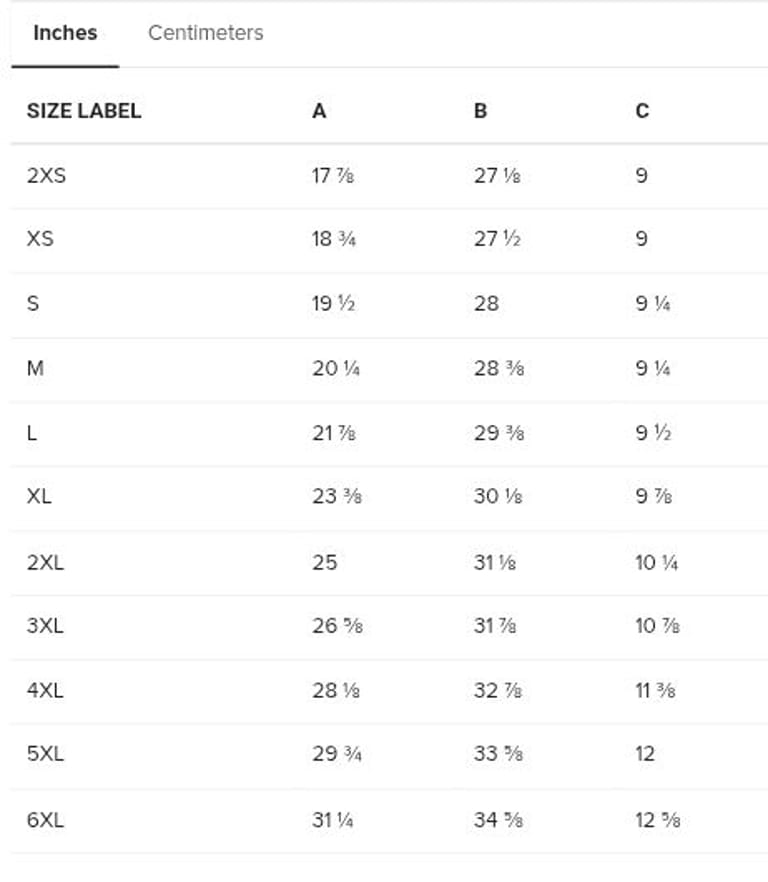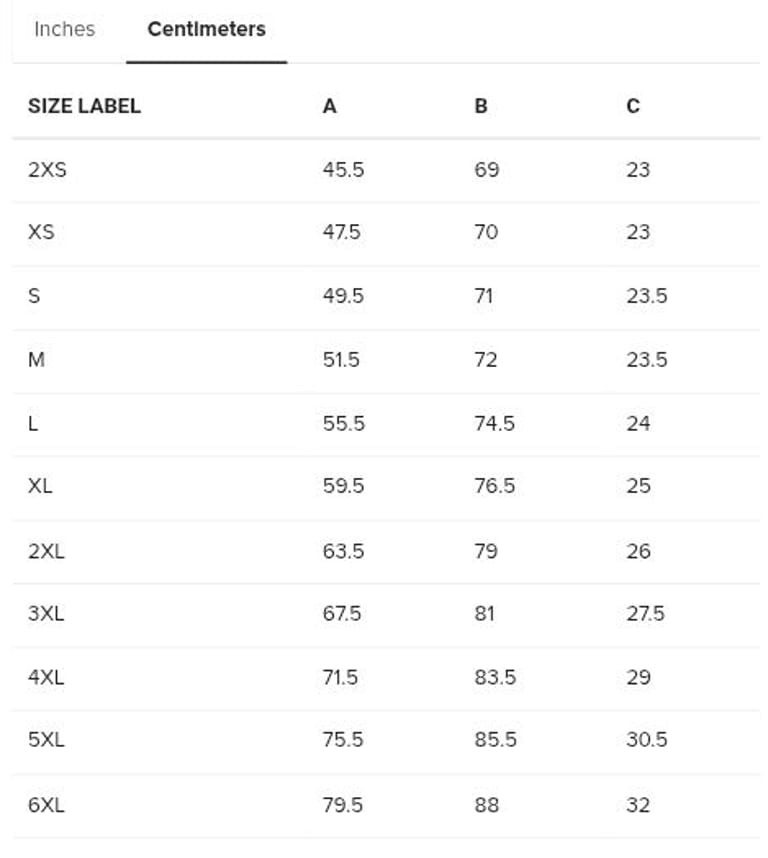 Extended size range: 2XS–6XL