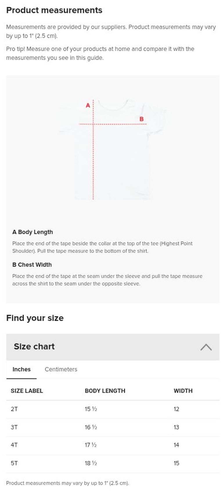 The model is 2 years old and wearing a 2T size shirt.